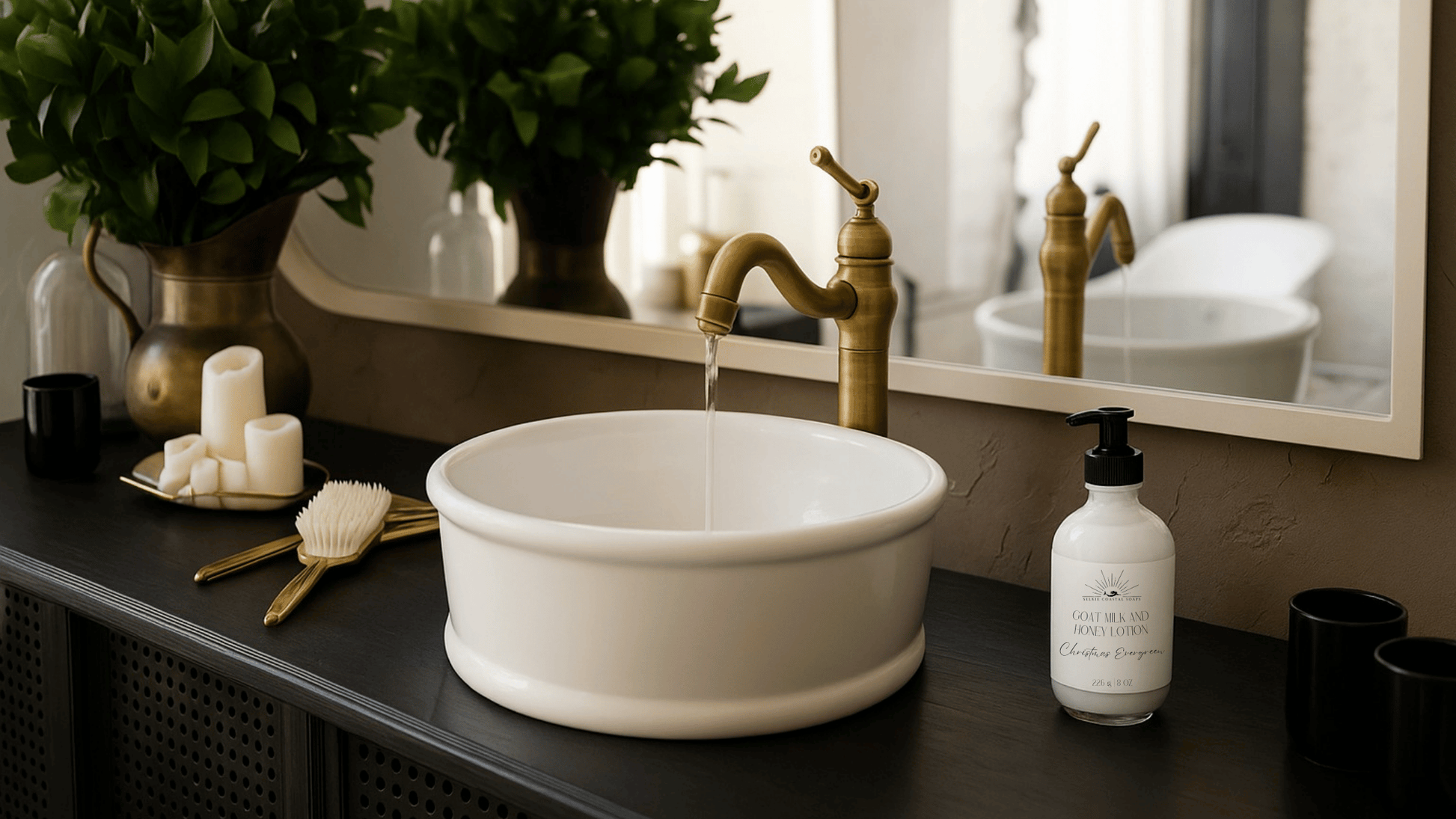 Finish notes: Driftwood cedar, beach moss, amber sands - Pacific Eucalyptus + Mint